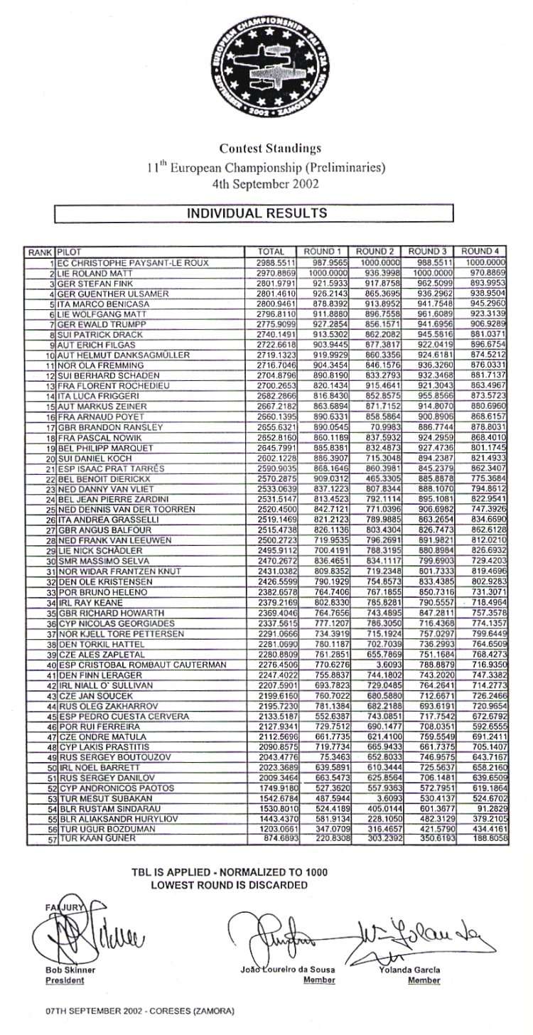 | 2. Roland Matt (LIE) | 935 | 967 | 1000 | 993 | 1993 |