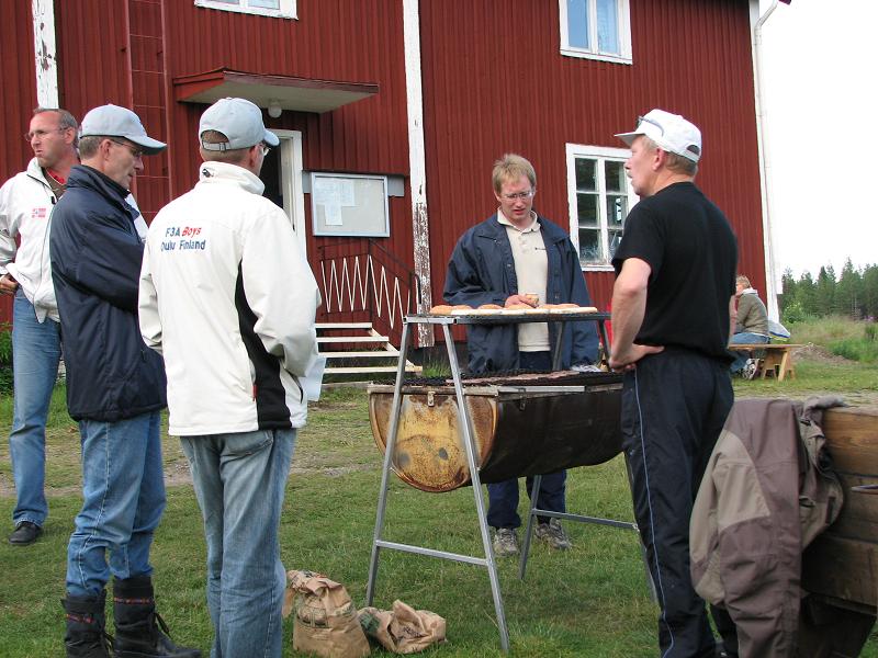 Grilli oli kuumana jokaisena iltana kerhorakennuksen pihamaalla